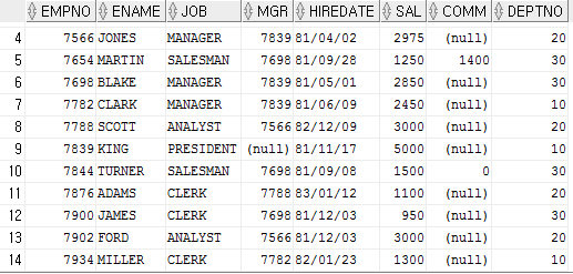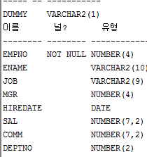 desc emp 하면 테이블의 구조를 조회할 때 다음과 같은 명령어를 사용한다.