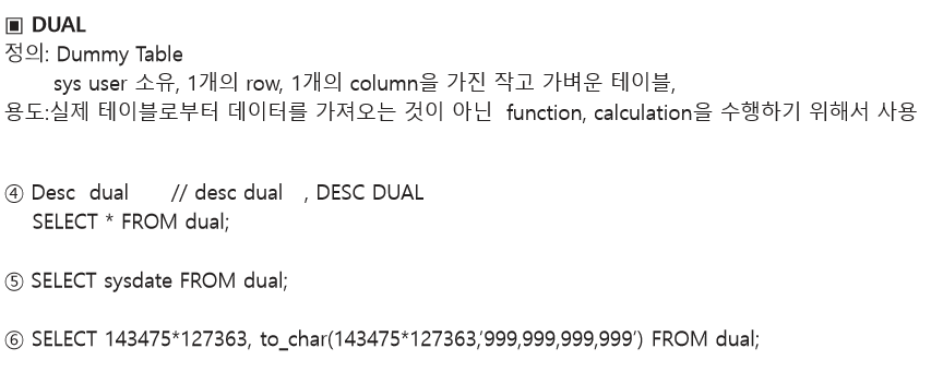 dual 의 용도는 ? 무언가를 요청하고 싶은데, 테이블 데이터를 조회하는 것이 아님....