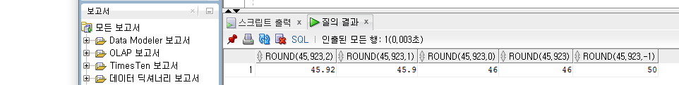 select round(45.923,2), round(45.923,1), round(45.923,0), round(45.923), round(45.923,-1) from dual;