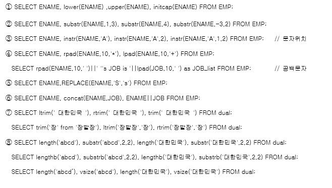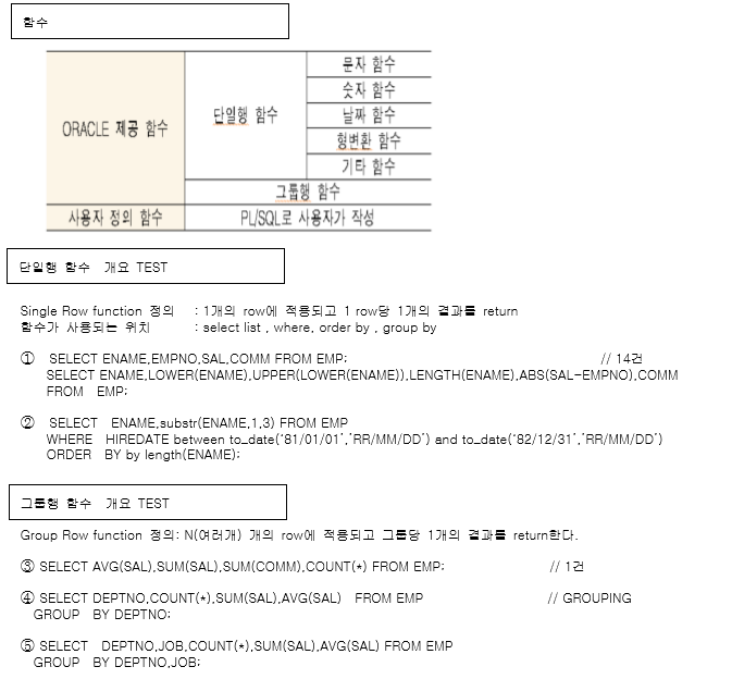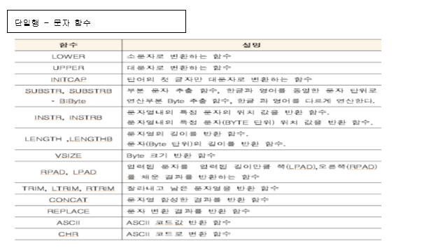 단일행 함수? 입력을 하나 받아서 하나를 리턴한다.