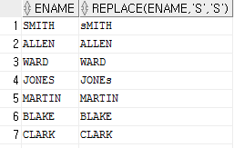 REPLACE 치환하는 함수 -> SQL 명령문은 대소문자를 구분하지 않지만, 데이터는 대소문자를 구분한다.