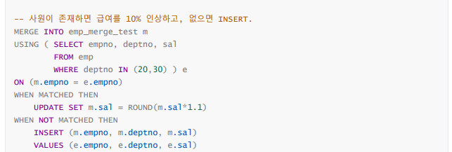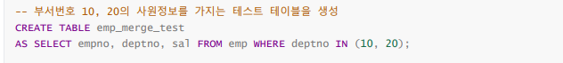 ** 부서번호 10, 20의 사원정보를 가지는 테스트 테이블을 생성 (중요)