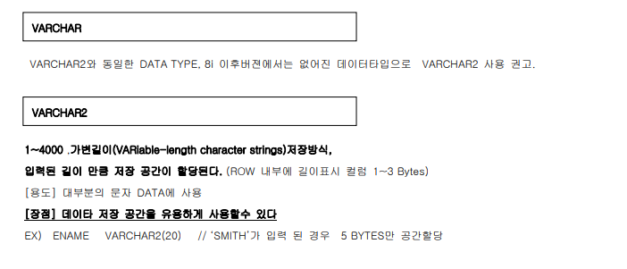 VARCHAR2 = Variable Length의 의미, 가변 길이 데이터 타입