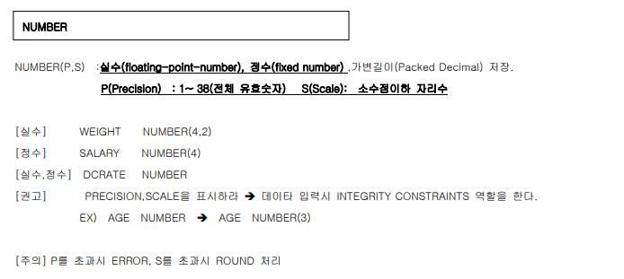 NUMBER는 부동소수점 형태로 데이터를 저장한다