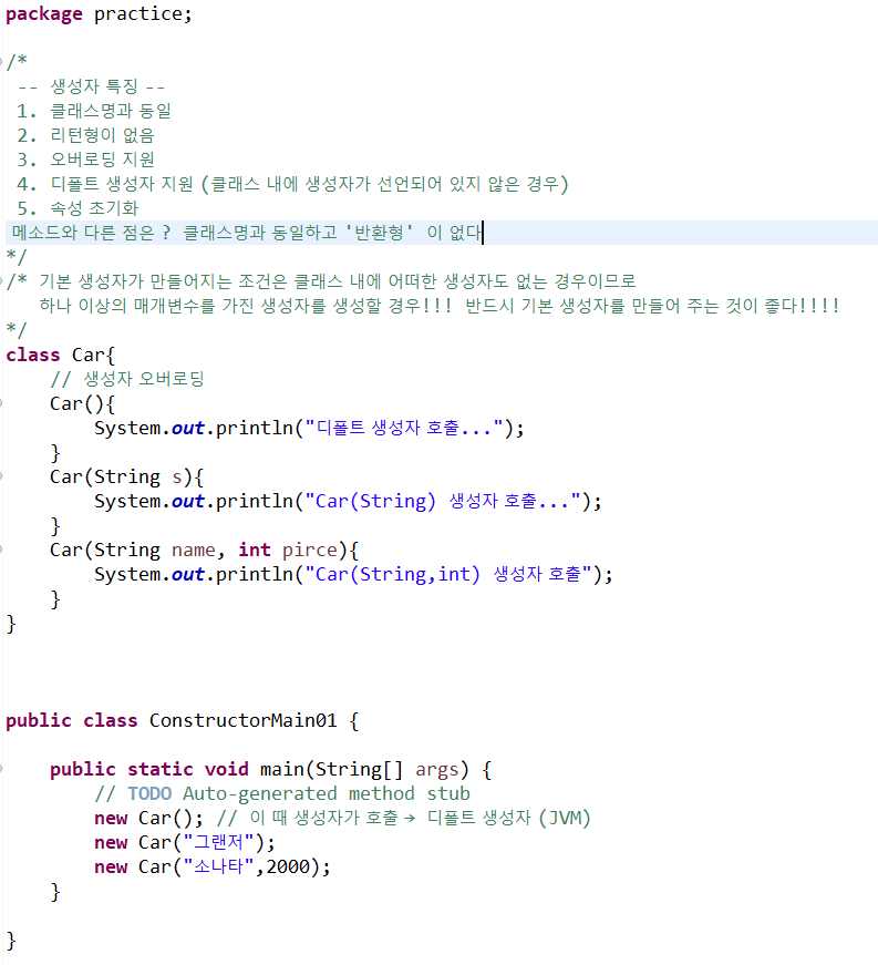 생성자 오버로딩을 했을 경우!