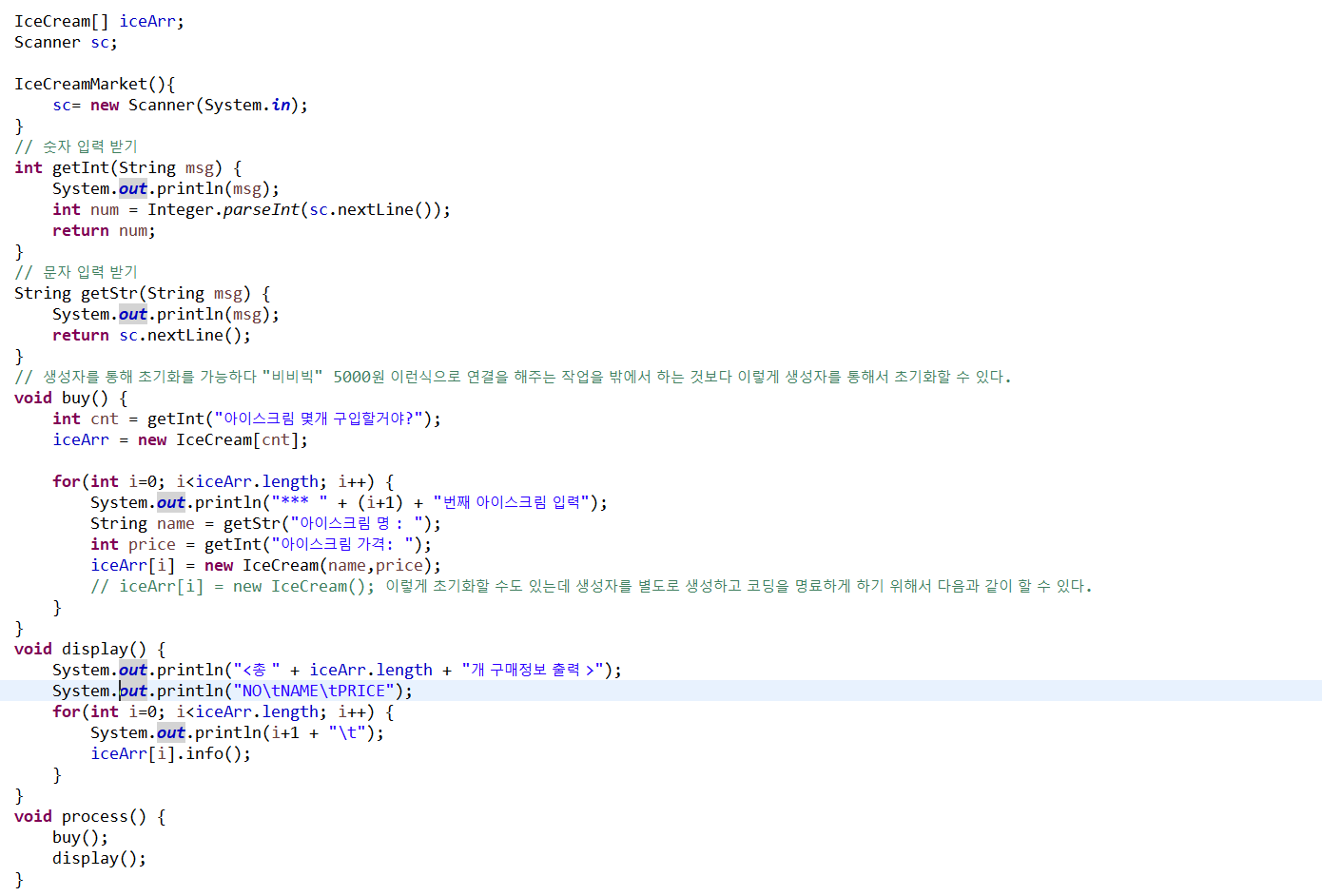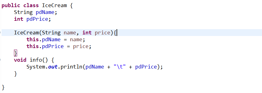 IceCream 배열을 해당 파일 내부에서 호출하여 호출자 메소드 (main) 의 코드를 간단하게 만들 수 있다.