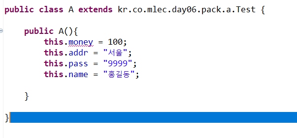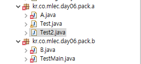 ** 다른 패키지에서 다른 클래스에서의 호출 (객체 선언)
