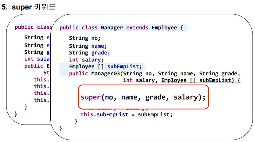 super()를 쓰는 경우 this가 에러가 발생. 그러므로 super()는 생략이 가능하다록 만들어뒀음