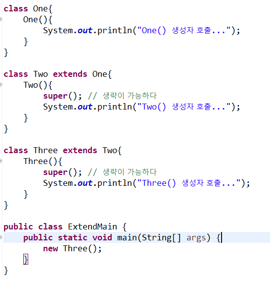 super() 를 생략하는 이유 ? 내 생성자 오버로딩을 할 때,