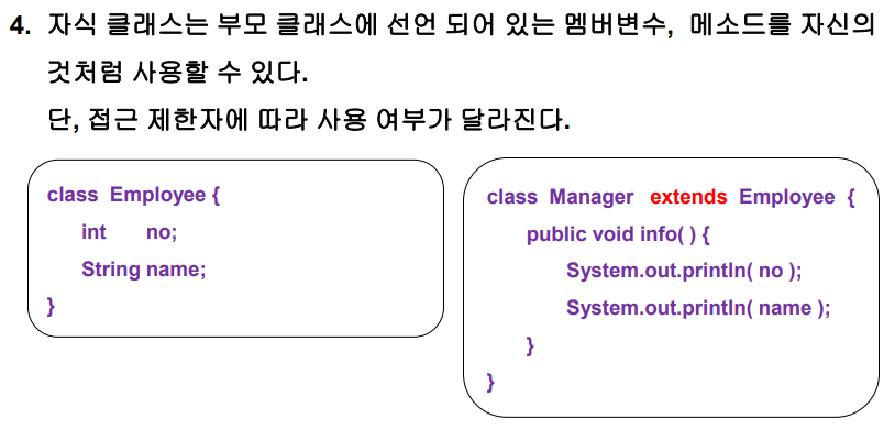 하위 클래스는 상위 클래스의 private 접근 제한자는 접근이 불가능.