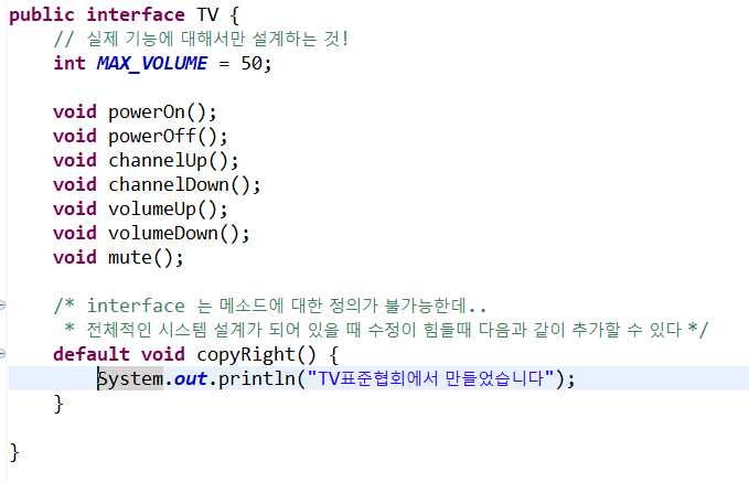 인터페이스는 추상 메소드와 상수 형태 ( public static final 형태로 가능하다 )
