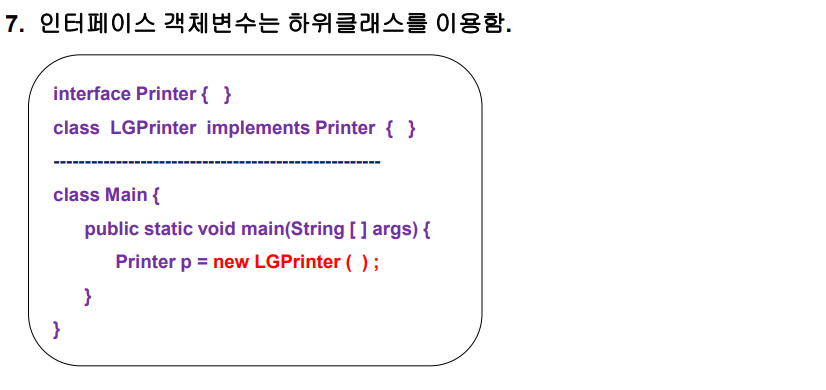 일반적으로 인터페이스 이름은 interface Printable → able 형태로 정의하는 경우가 많다.