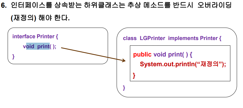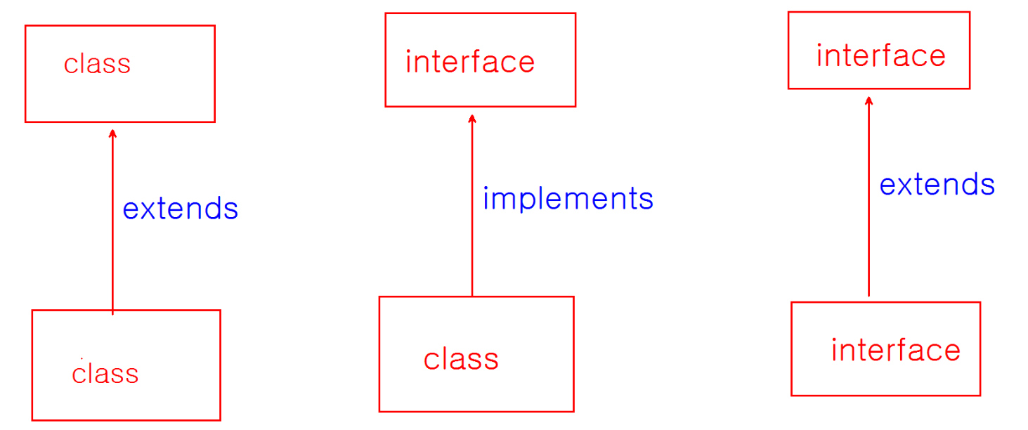 클래스가 인터페이스를 상속 받을 때는 implements (다중 상속)