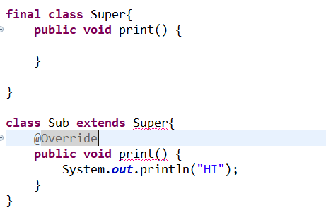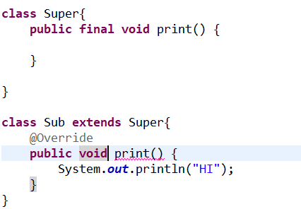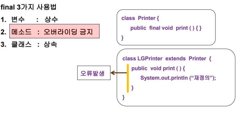final 키워드가 붙은 메소드는 오버라이딩이 불가능.