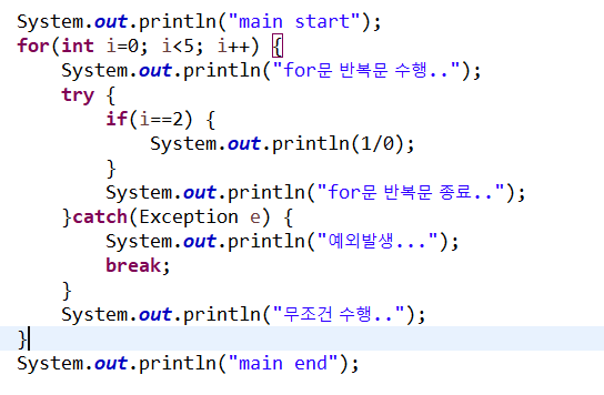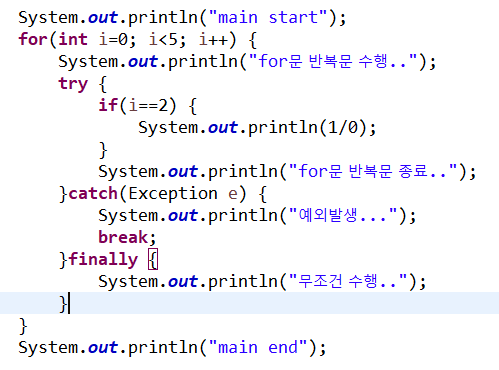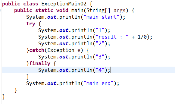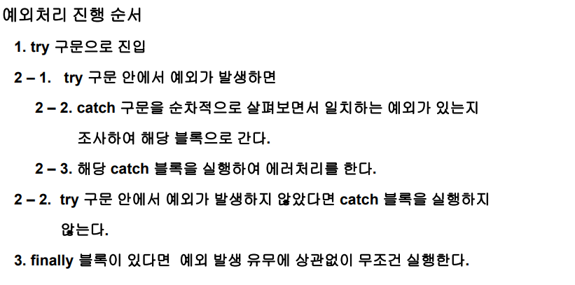 try 안에 문장이 남아 있어도 예외가 발생하면 catch로 갑니다.