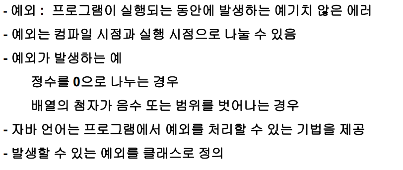 프로그래밍 상에서 발생하는 문제를 예외라고 한다.