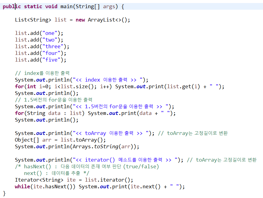 (+) iterator() : Iterator 객체를 반환