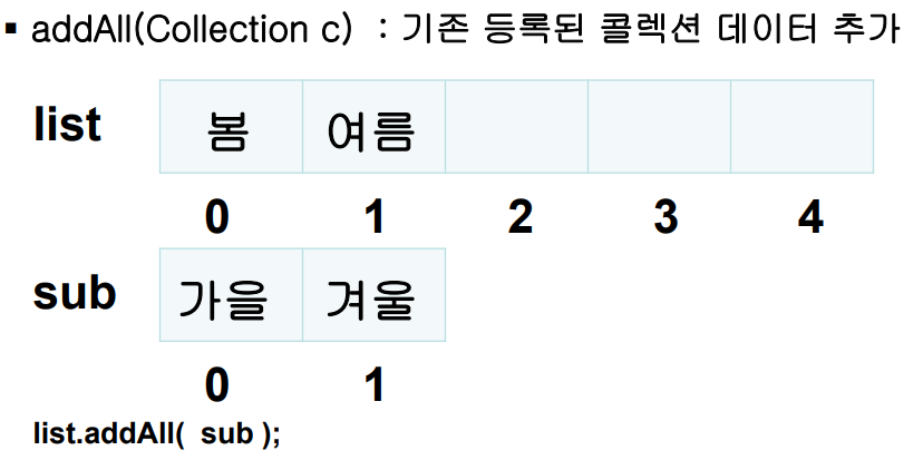 ArrayList는 가변길이이므로 list.addAll(sub) 을 하게 되면 list의 길이가 더 늘어나고 추가돼!!!