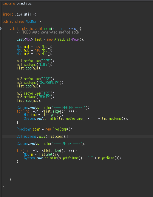그리고 Collection.sort를 호출할 때 Comparator 인터페이스를 구현한 클래스의 객체를 전달하면 돼