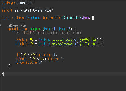 Comparator 인터페이스를 구현해서 내부에 compare 메소드로 정렬할 방식을 정한다.