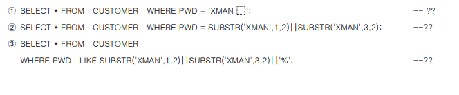 2번의 경우 조회 불가능 SUBSTR의 결과가 VARCHAR2 타입이라서 조회가 되지 않는다.