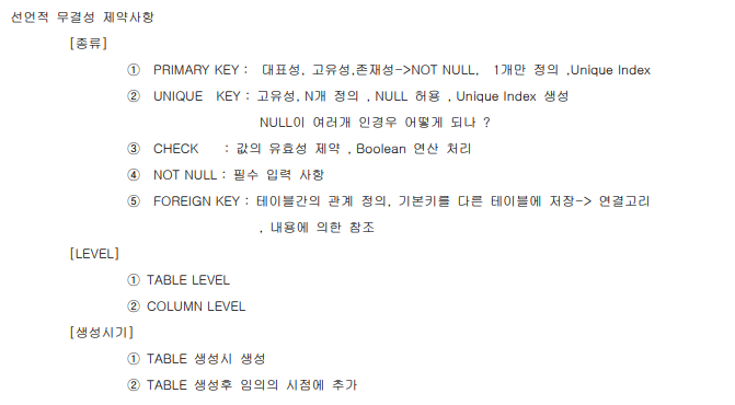 제약사항은 SELECT와 관련이 없다. → DML (INSERT, DELETE, UPDATE) 과 관련된 것이다