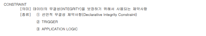 Primary key, Foreign key 선언적 무결성 제약사항이라고 한다