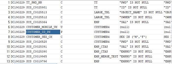 하지만 select * from user_constraints 로 조회를 할 경우 나옴