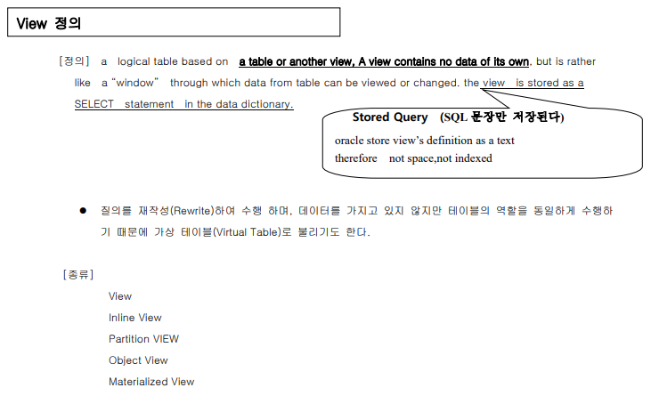 뷰의 정의는 ? 1. Stored query 2. merge (어떻게 실행이 되는가..? merge를 통해 실행돼 ..... . . . . . . . .