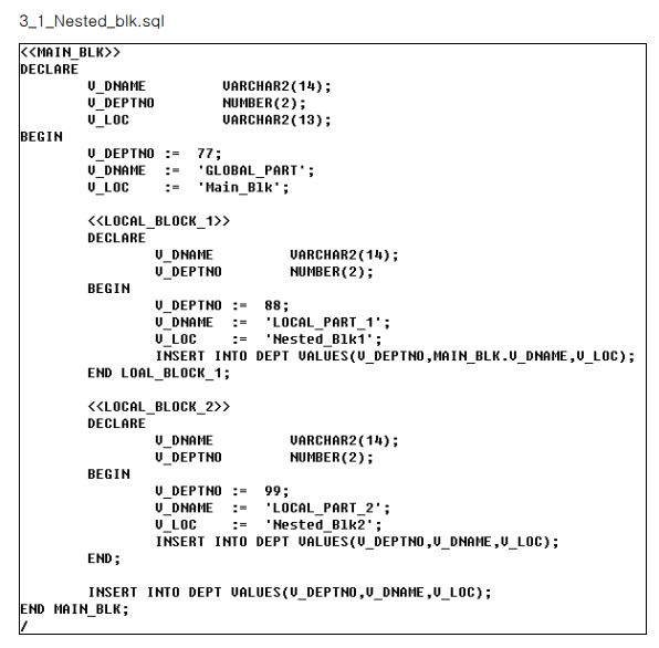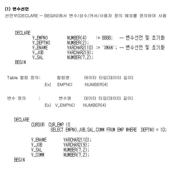 DECLARE와 BEGIN 사이를 선언부라고 한다.