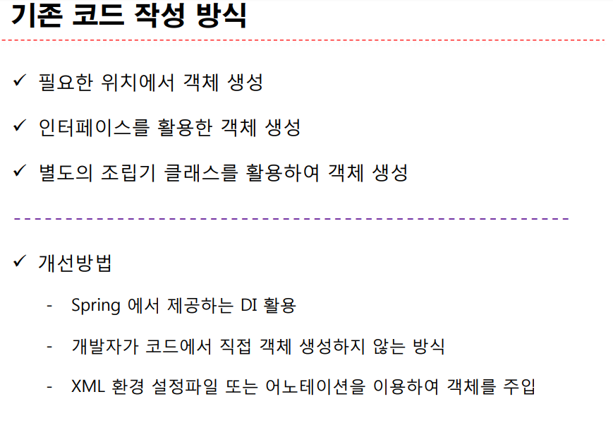 DI 란 기존의 자바는 객체를 직접 만들어서 소유했지만,