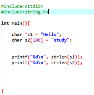 strlen(s1)와 같이 strlen 함수에 문자열 포인터를 넣으면 문자열의 길이가 반환됩니다.
