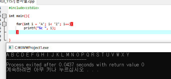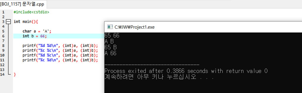 정수랑 문자를 더해서 %c로 출력하면 문자!!!!!!!!!!!!!!!!!!!!!!!!