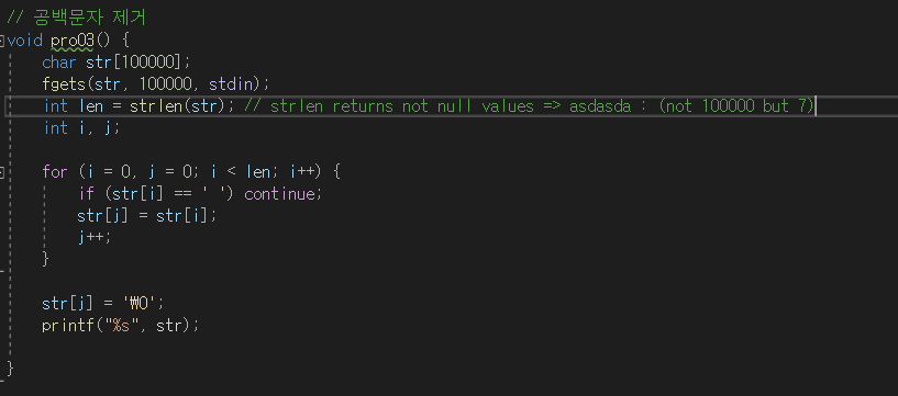 1. str[j] = '\0' 이 부분이 핵심이다.