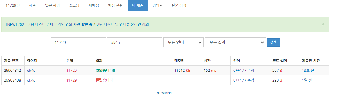 옛날에 한화시스템에서도 나온 문제이므로 암기하는게 좋을거 같다~ 고생혀따 준우