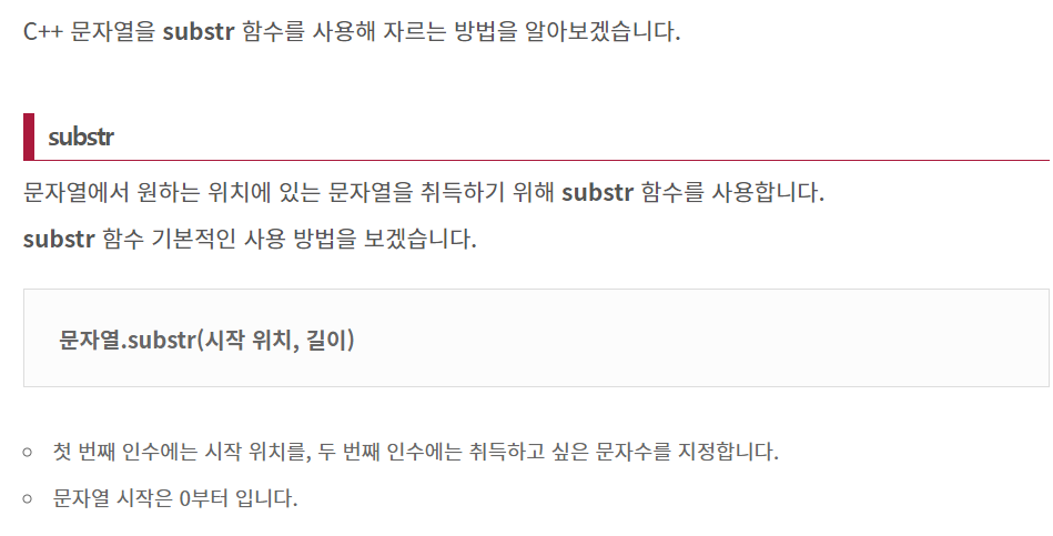 문자열에서 인자로 주어인 인덱스 이후의 문자열을 추출합니다.
