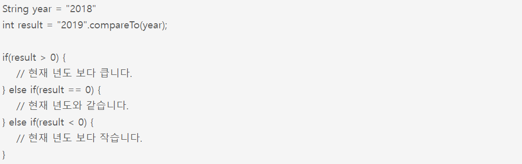 문자열을 사전순으로 정렬했을때의 우선 순위를 비교하려면 compareTo() 메소드를 사용합니다.