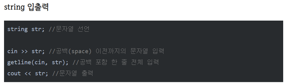 iostream 헤더만 있으면 string 헤더를 따로 선언 할 필요가 없다.