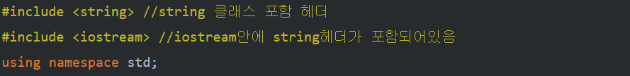 먼저 string 클래스를 사용하려면 string 헤더를 포함해야합니다.