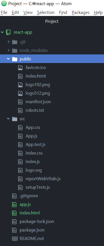 public은 index.html이 있는곳 (리액트 기존 웹앱)