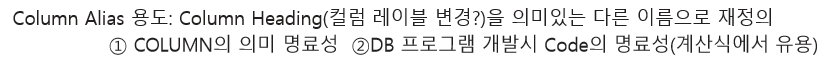COLUMN ALIAS 를 만들 수 있다. -> 코드의 명료성을 위해 이것을 사용함