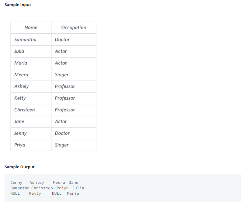Occupations | HackerRank